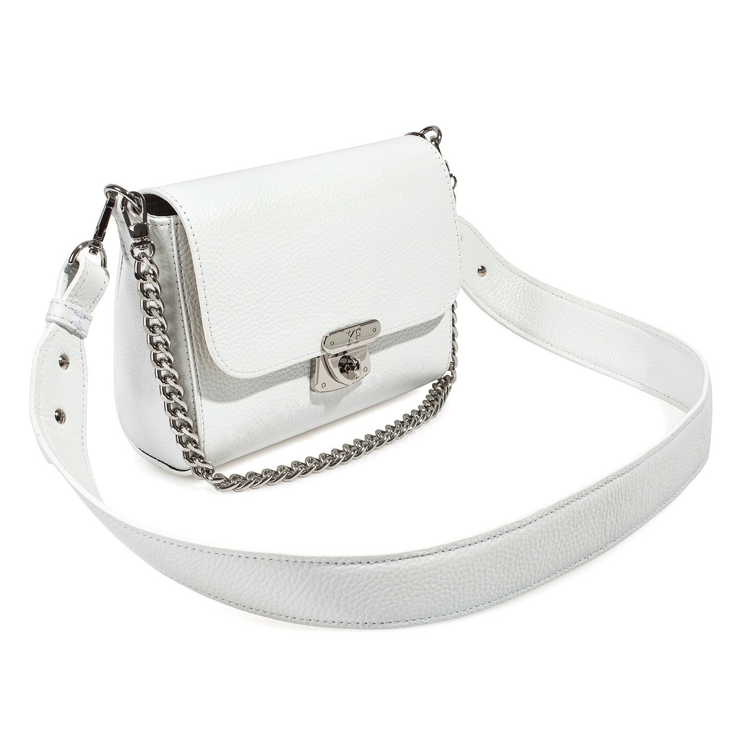 Leather Crossbody Bag, White Leather Shoulder Bag, Women's Leather Cross body Bag, Leather bag KF-3567