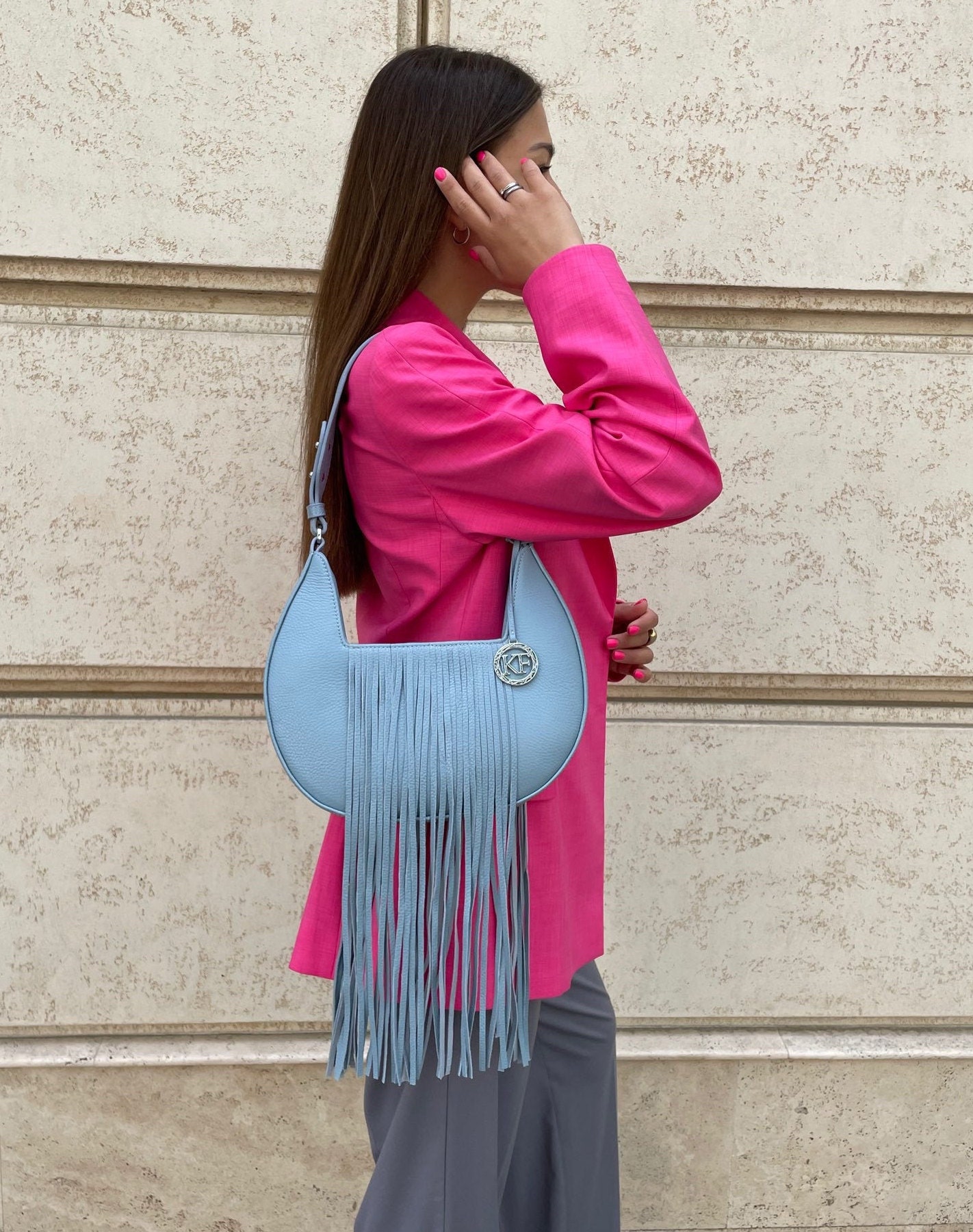 Leather Shoulder Bag, Blue Leather Shoulder Bag, Leather bag KF-4312