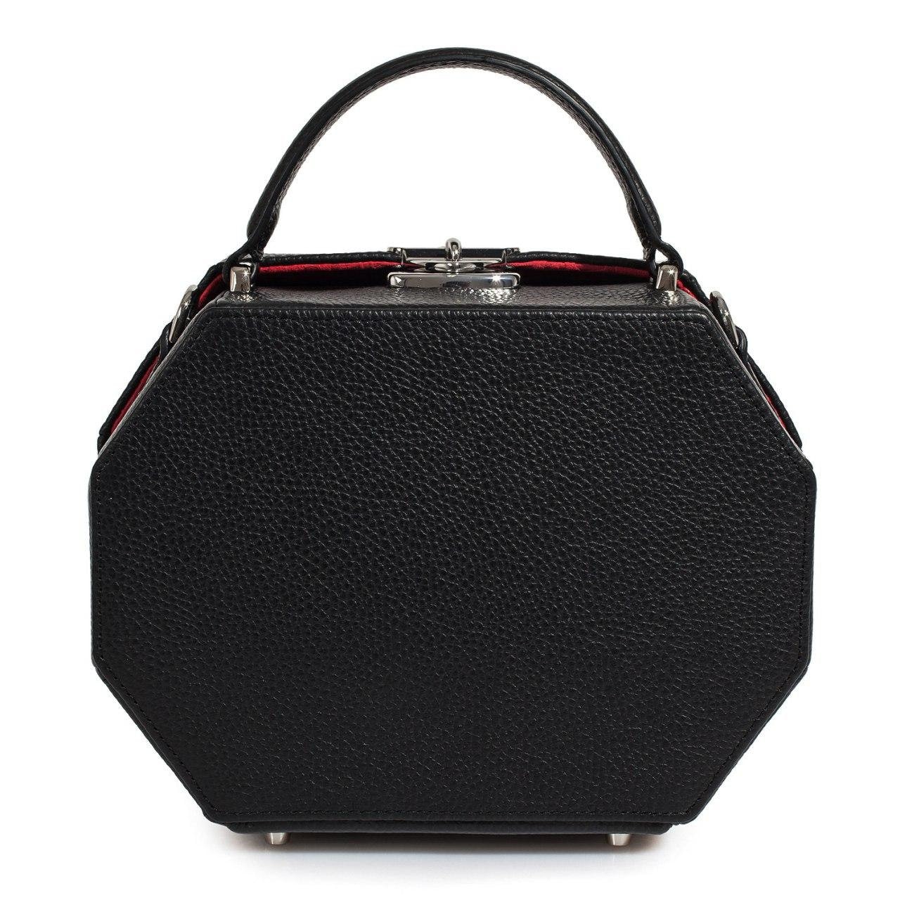Black genuine leather boxbag from ukrainian designer Katerina Fox. This model is designed for women who appreciate the sleek design combined with functionality and comfort. High-quality and reliable hardware ensure long service bags. The internal space of a bag is equipped with one spacious compartment and two patch-pockets and one zipper pocket. The bag is closed with a clasp. The bottom of the bag is protected with metal legs. There is a long handle that allows you to wear the bag on the shoulder. The kit also includes a storage bag.