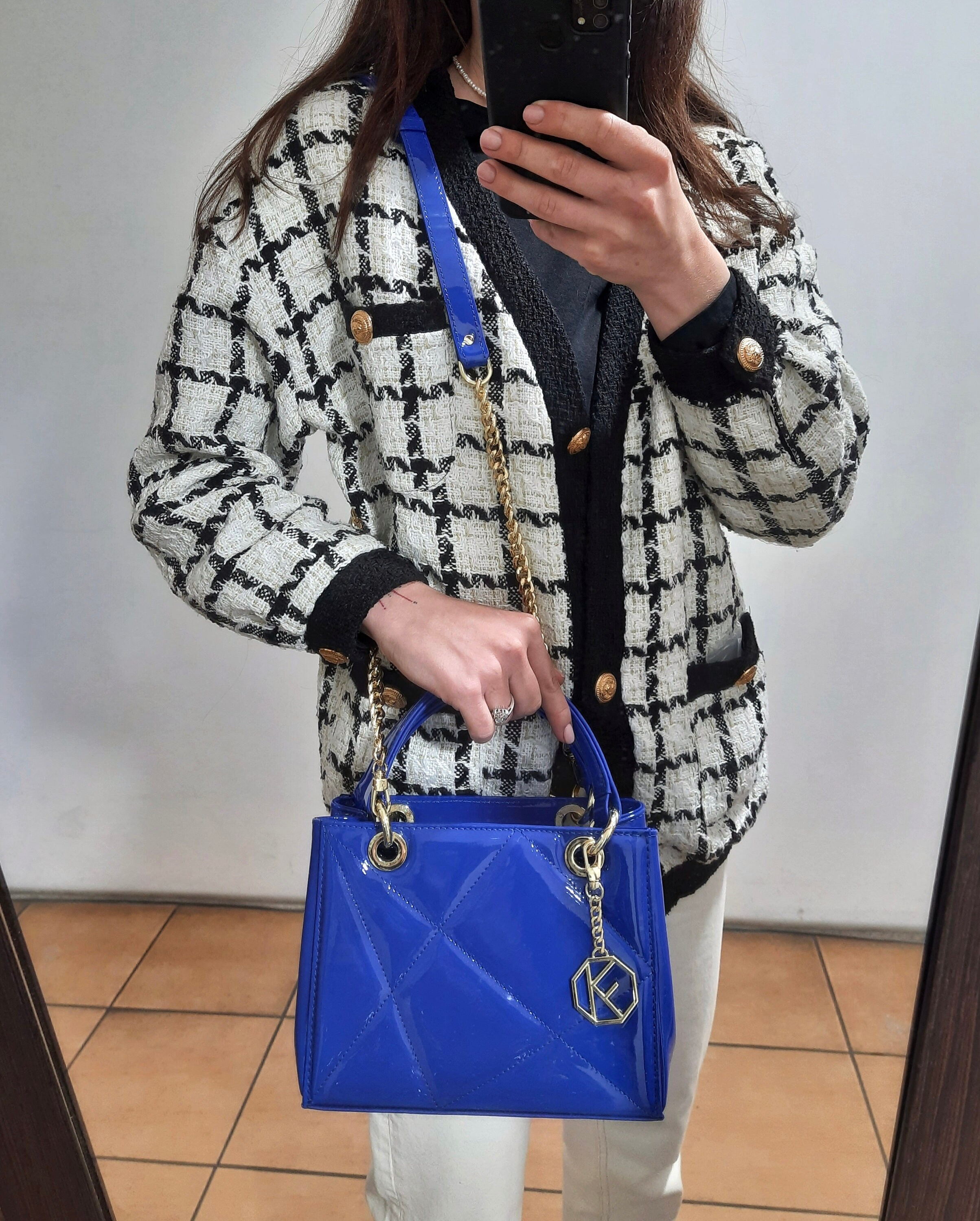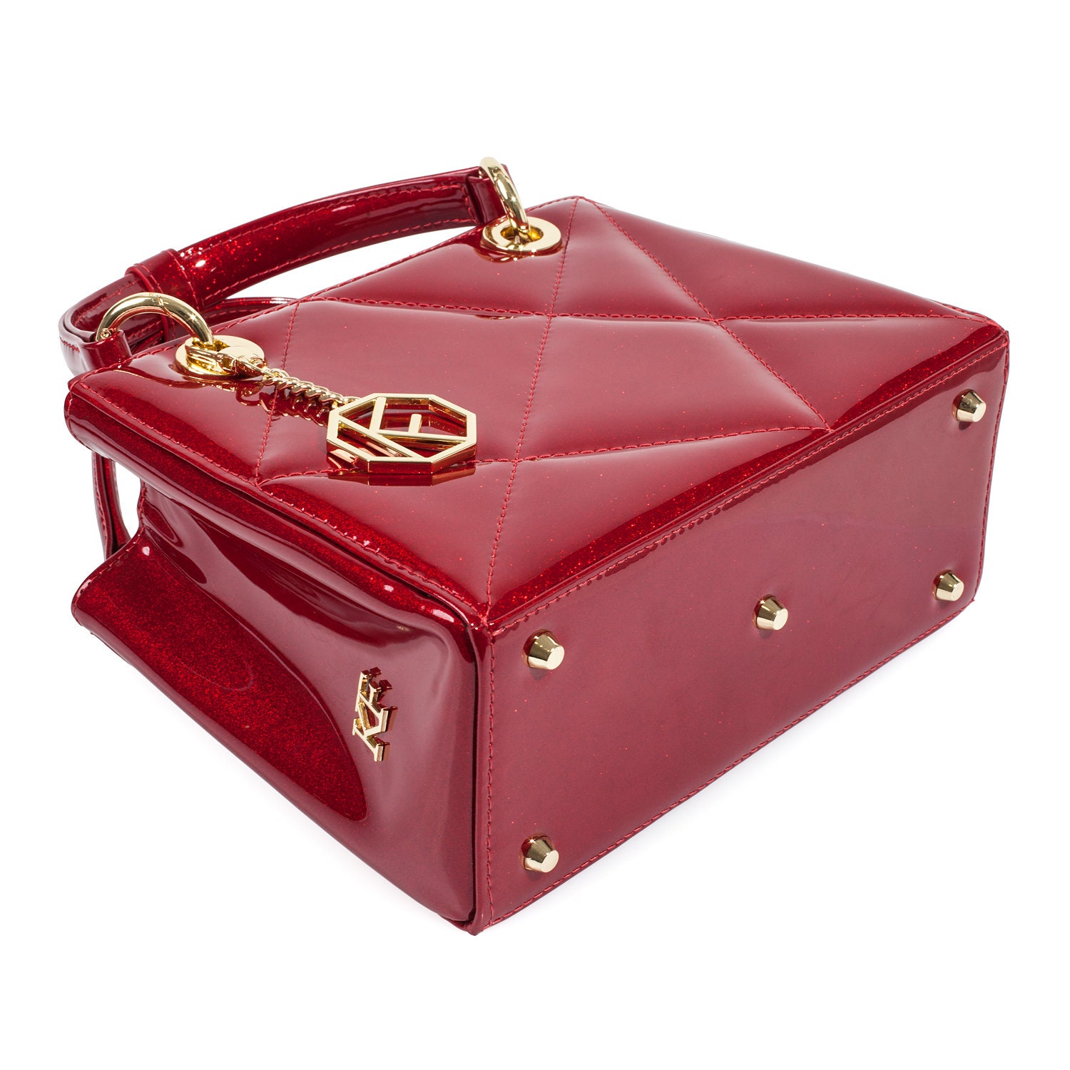 Leather Top Handle Bag, Red Patent Leather Handbag, Women's Leather Bag KF-5027